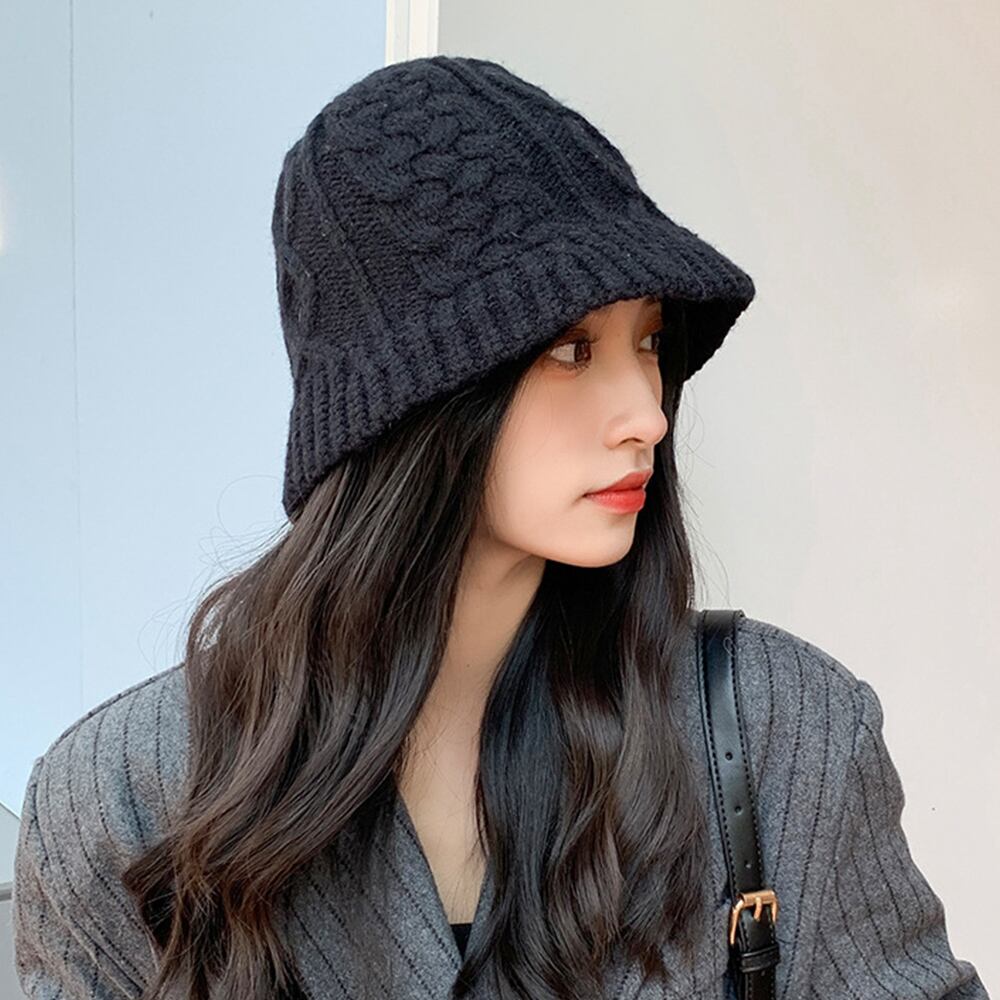 バケットハット チューリップハット 防寒性 秋冬 無地 暖かい 帽子 シンプル カジュアル おしゃれ 可愛い ブラック