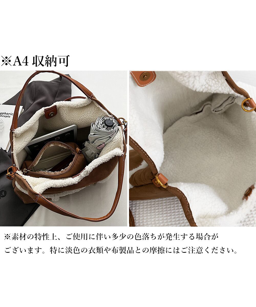 レディース ポーチ付き 裏ボアバッグ 大容量 もこもこ手提げバッグ 通勤通学 斜め掛け鞄 秋冬 ムートン風バッグおしゃれ