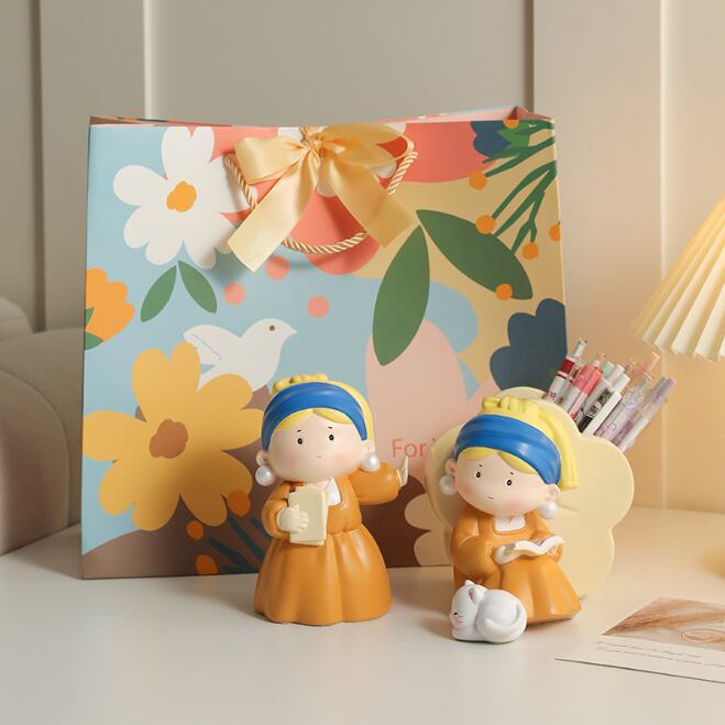 ブックエンド 名画パロディ真珠の耳飾りの少女 可愛い オブジェ 高級感 事務用品 ペンホルダー ペン立て