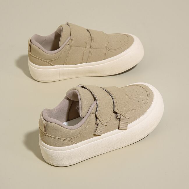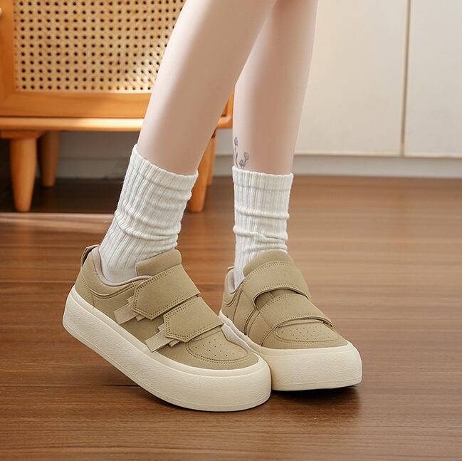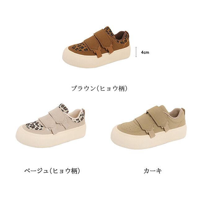 *カーキ*レディース スニーカー ベルクロ マジックテープ