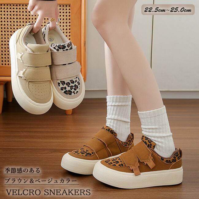 *ベージュ(ヒョウ柄)*スニーカー ベルクロ マジックテープ