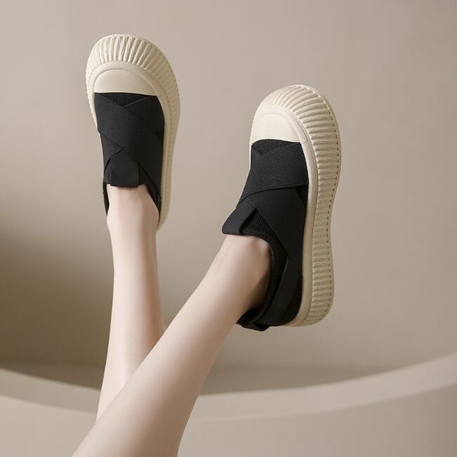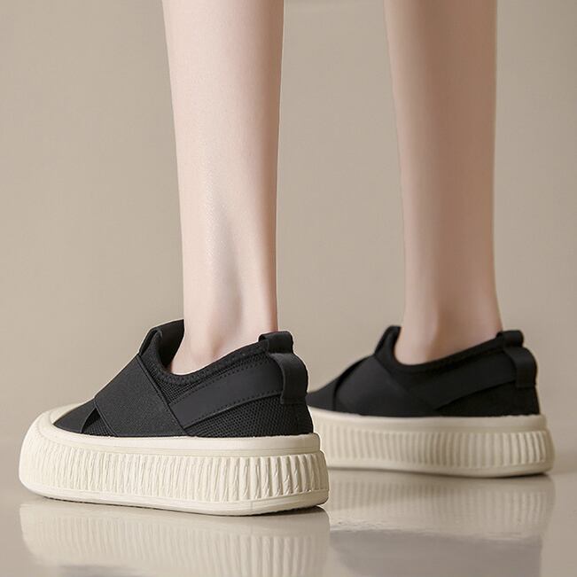 *黒*スニーカー スリッポン シンプル 5cmソール ローカット 厚底