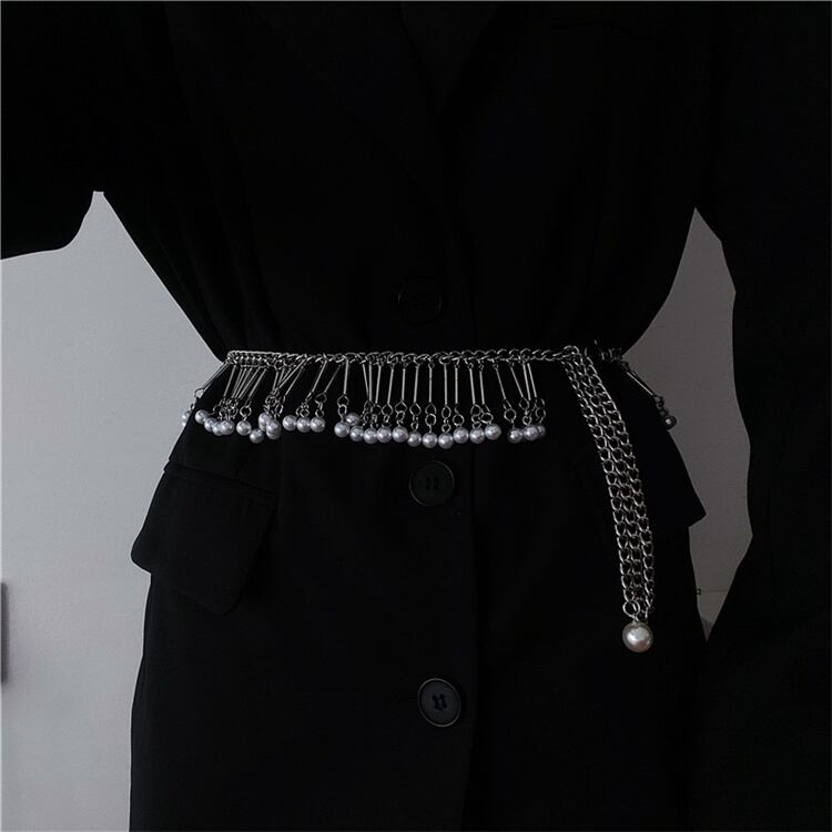 フリンジベルト パールチェーン帯 個性 装飾 金属ベルト ベルト ウエストベルト
