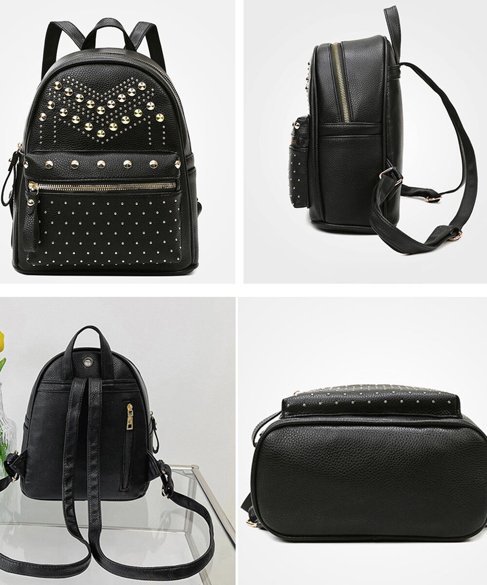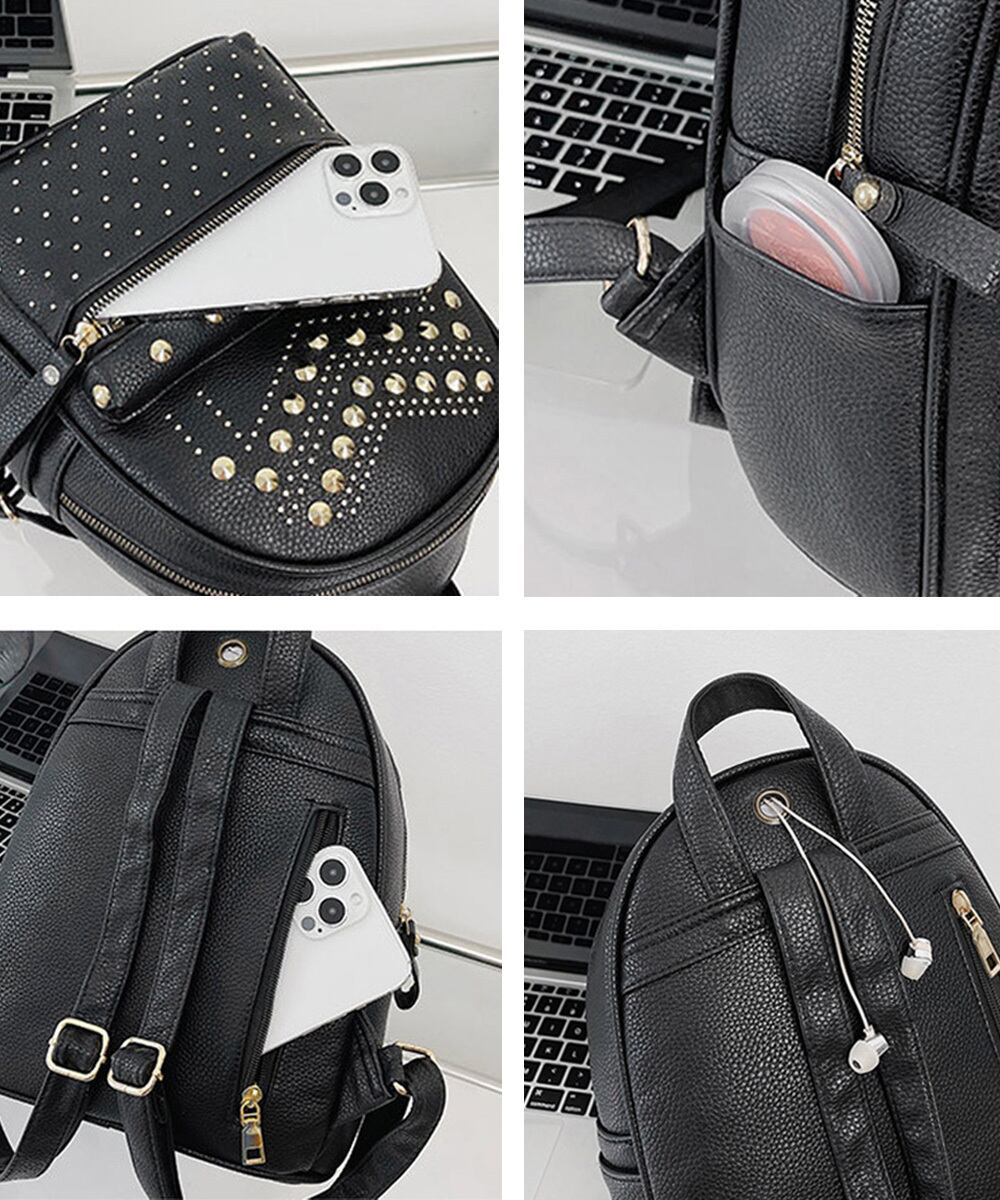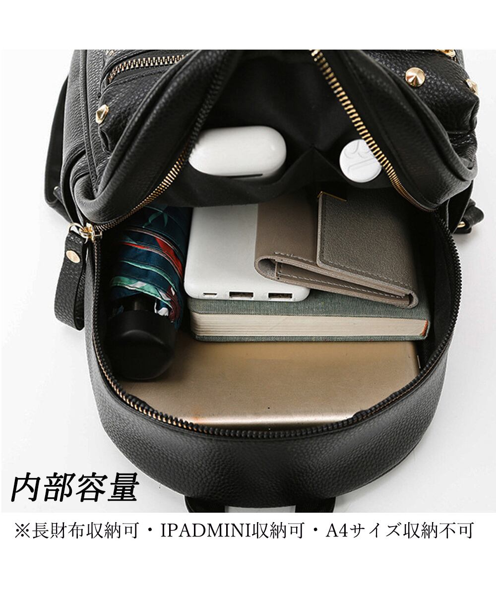 スタッズがアクセントになるレディースフェイクレザーリュック