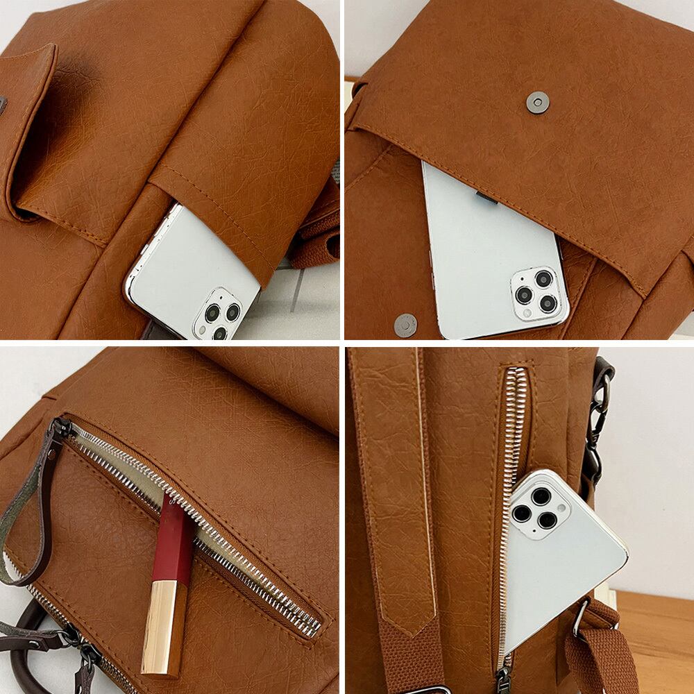 渋い光沢感のある牛シボ模様PU生地で仕上げたマットな質感のレトロチックなスクエアリュック