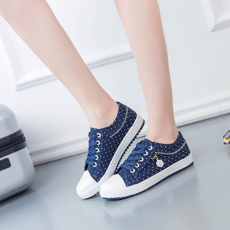 *ネイビー*スニーカー ス ローカット ドット スリッポン 厚底
