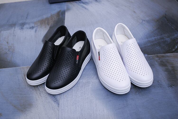 *ブラック*スニーカー デイリーシューズ 通気性 軽量 厚底 足楽ちん レザータッチ
