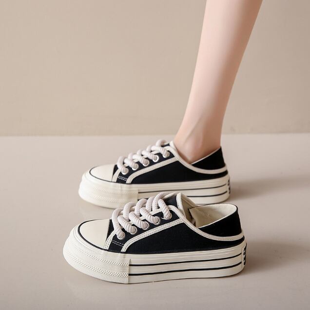 *黒*スニーカー シンプル 4.5cmソール ローカット