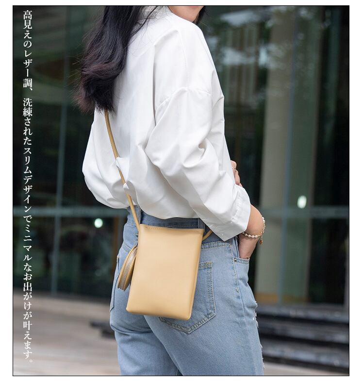 ・高見えのレザー調、洗練されたスリムデザインでミニマルなお出がけが叶えます。