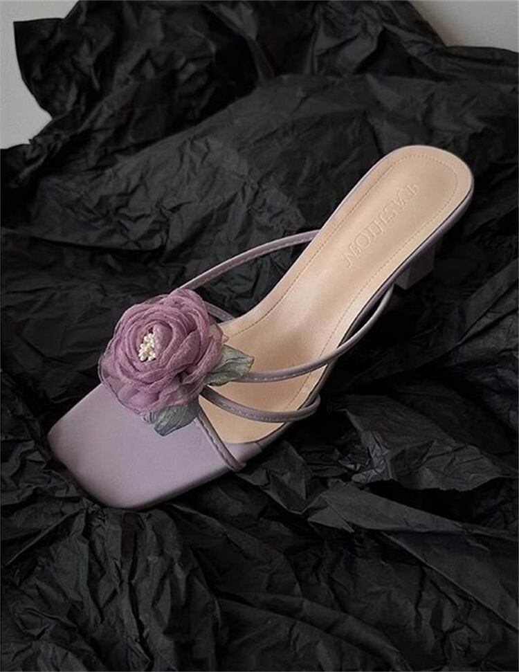 *パープル*ハイヒール サンダル バラのスリッパ