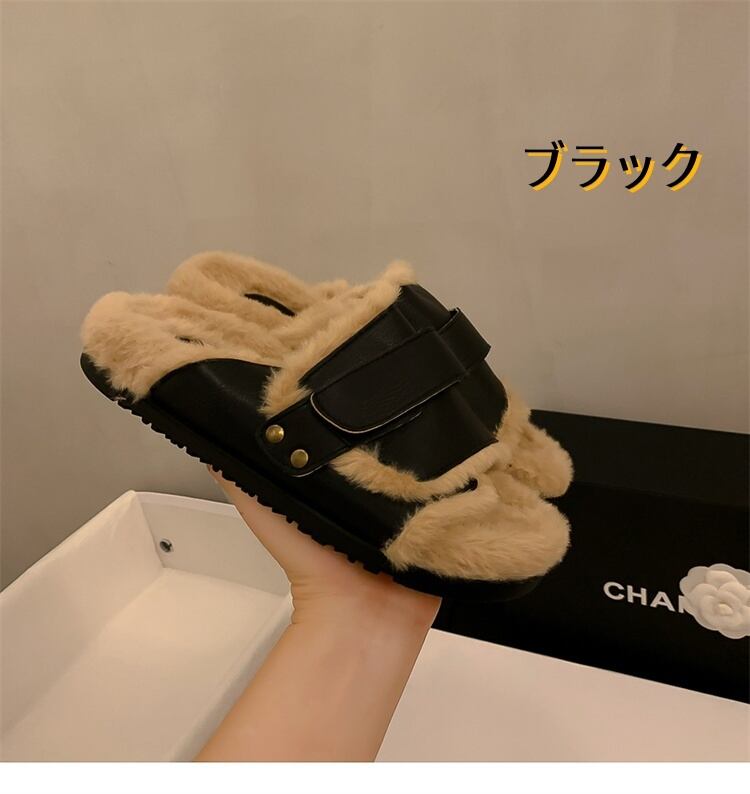 *ブラック*毛羽立ちスリッパ 厚底