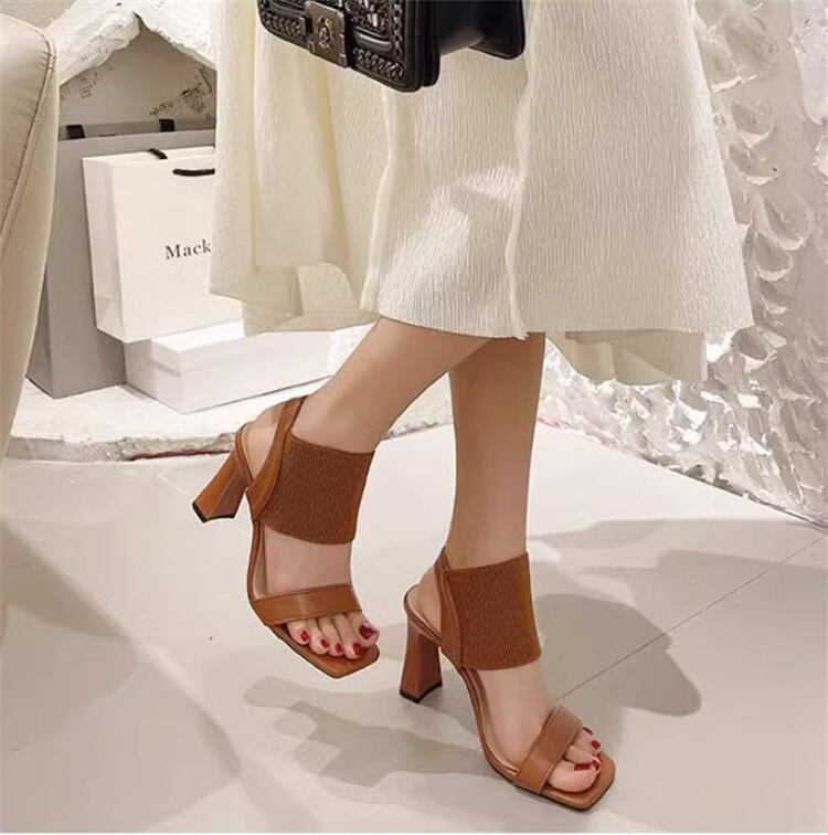 *コーヒー*ピンヒール 太いヒール サンダル