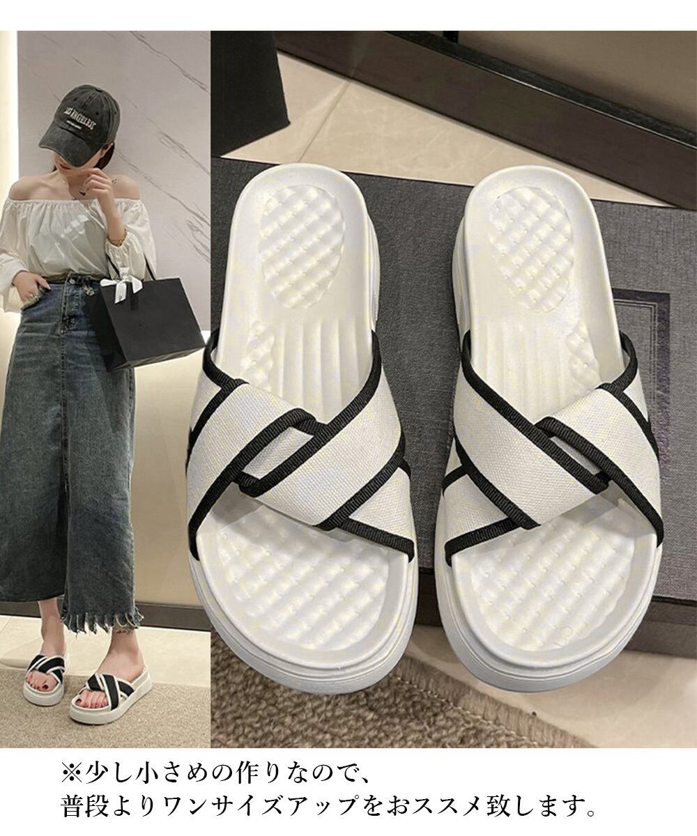 *黒*厚底サンダル ねじり配色クロスサンダル