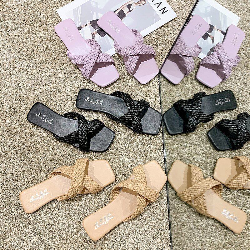 *アプリコット*フラットサンダル 幅広 クロスサンダル