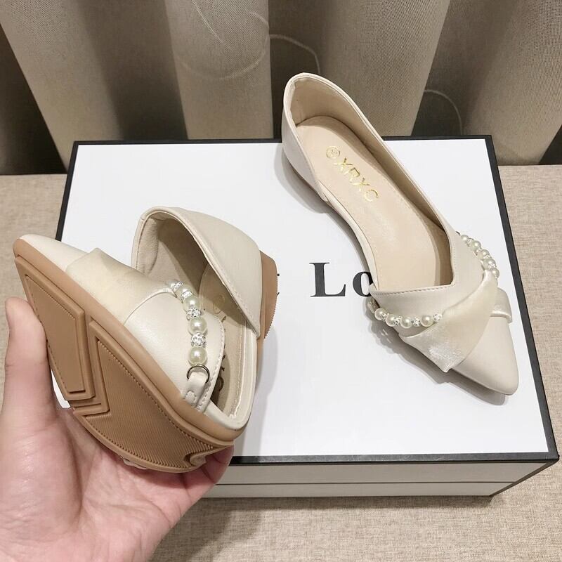 *ベージュ*パンプス ポインテッドトゥ パール