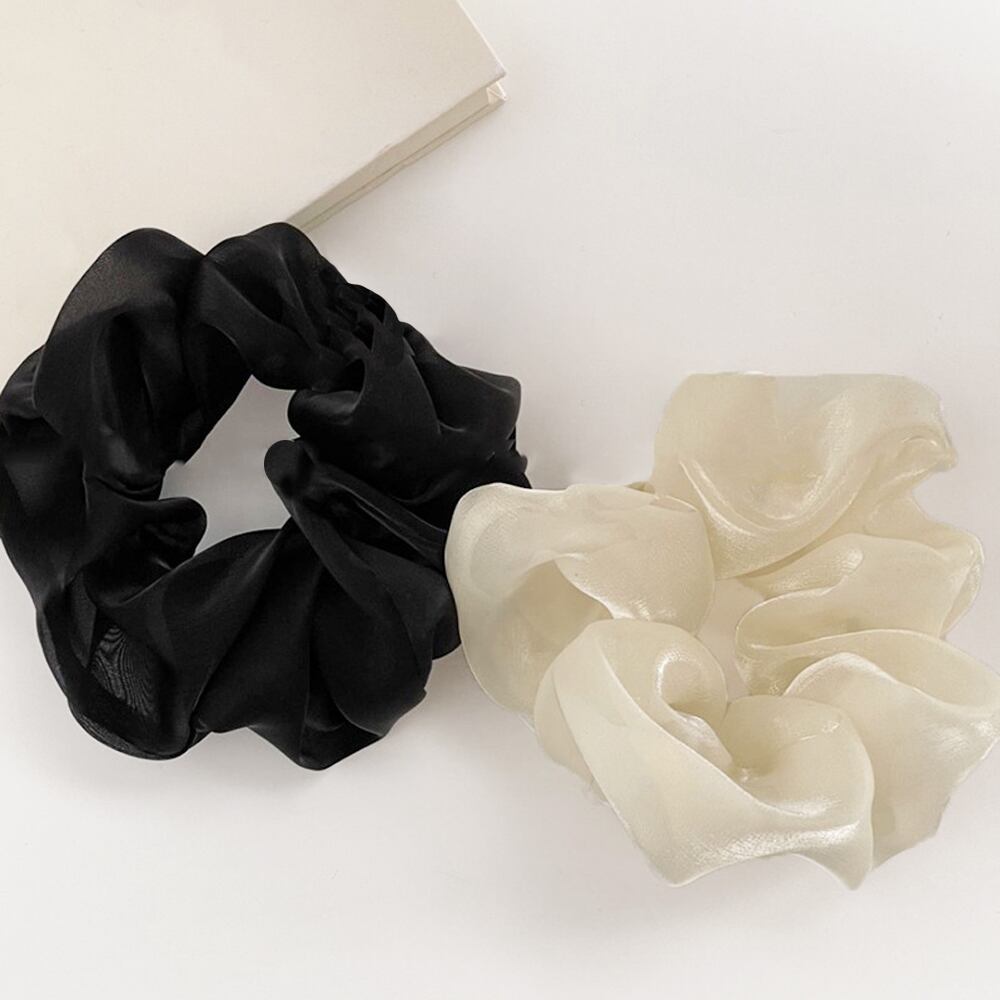 アイボリーとブラック2色展開、程度よく光沢感のあるシュシュです。